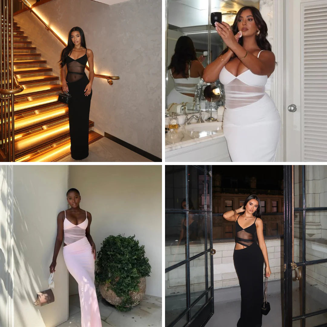 Step into the spotlight with the MEL 3147 Maxi Dress. Featuring a sheer, transparent bodice that elegantly teases, flowing into a long, graceful skirt, this dress exudes effortless sophistication and sensual allure. Designed to captivate and command attention, it’s the perfect choice for a glamorous evening, a rooftop soirée, or any moment where you want to shine with confidence and elegance. Bold, breathtaking, and unforgettable.